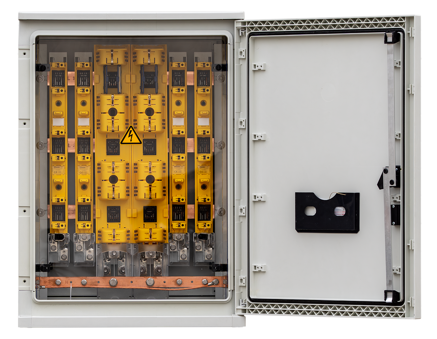 Made from unsaturated polyester reinforced with fiberglass and self-extinguish additives RAL 7035.